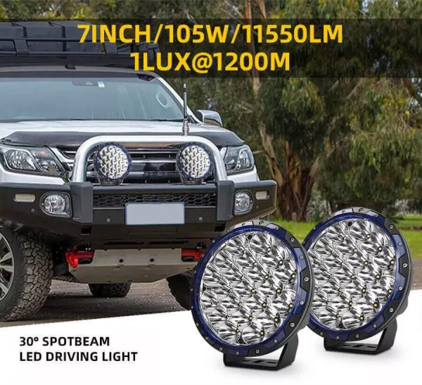 یک فاصله روشنایی 1LUX@1200M و 8925LM این محصول رو از امتیاز ویژه ایی برای بیراهه نوردی و آفرود وسایل نقلیه تبدیل کرده است.بدنه از جنس آلیاژ آلومینیوم دایکاست است که باعث خنک کنندگی و مقاومت در برابر استرس و ضربه می شود علاوه بر این سوپاپ تخلیه هوا و رطوبت باعت دریافت استاندارد IP68 آن شده است.طیف نور این محصول 3500/6500K هست یعنی دارای نور آمبر یا مه شکن هم می تواند باشد.دارای سه رینگ قرمز،آبی،نارنجی و امکان نصب کاور مشکی و زرد مه شکن می باشد،جنس پایه آن از فولاد ضدزنگ و همراه با مفصل ارتعاش گیر با زاویه 75 درجه می باشد.جنس شیشه از متریال PMMA است