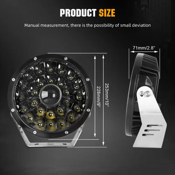 تراشه نسل جدید OSRAM P8 + LASER در این مدل استفاده شده و عملکرد بالا پوشش آلیاژ آلومینیوم قوی، دستیابی به اتلاف گرمای کارآمد، عمر مفید بیش از 80000 ساعت را تضمین می کند. دارای استاندارد IP68 ضد آب، ضد گرد و غبار موثر و ضد آب، می تواند انواع آب و هوای بد را تحمل کند. لنز مواد PC بادوام و مقاوم در برابر سایش است.امکان نصب کاور و پشتیبانی از دو طیف نور زرد و سفید و COMBO SPOT DRIVING BEAM از دیگر مشخصات این محصول می باشد.